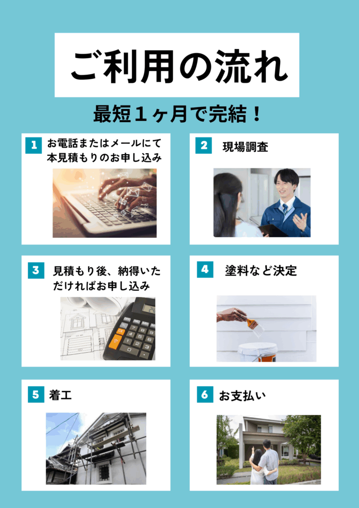 イワショウは、本見積もりのお問い合わせから着工まで最短1ヶ月です。